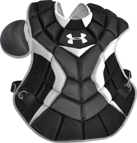 Signature MPZ® construction and low-rebound foam deaden impact for easy-to-recover blocked balls. Tough, plastic inserts at throat, shoulders, and abs maximizes protection. Customizable straps and harness keep gear secure and in place. UA HeatGear® keeps catchers cool, dry & light all game long. Ventilation ports on back for superior breathability. Fully adjustable shoulder cap for unique placement. Aegis Microbe Shield™ kills bacteria. Chest Protector Length- 16.5-inches. Imported.