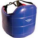 Provides maximum protection around the ribs. Made of durable Vinyl - reversible solid red/blue. Adjustable clip and velcro fasten.